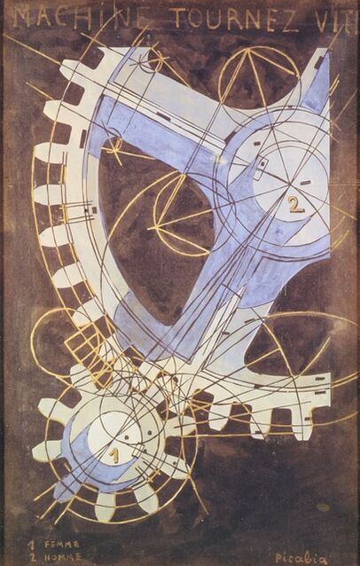 "Machines turn quickly", oleh Francis Picabia pada tahun 1916-1918. Karya yang memperlihatkan gambar mekanik yang mirip dengan diagram teknik atau cetak biru mesin. Karya ini memadukan unsur mekanis dengan gaya abstrak dan surealis. Karya ini mewakili perubahan penting dalam seni modern, menggabungkan estetika mekanik dan seni abstrak. Mencerminkan ketertarikan era terhadap mekanisasi dan teknologi di awal abad ke-20, karya tersebut mempengaruhi perkembangan desain grafis dan industri dengan pendekatan yang memadukan fungsi mekanis dan estetika Amerika. Karya ini memperkenalkan pendekatan baru dalam menggabungkan elemen mekanis ke dalam desain serta memengaruhi bagaimana desainer memikirkan hubungan antara bentuk dan fungsi.
